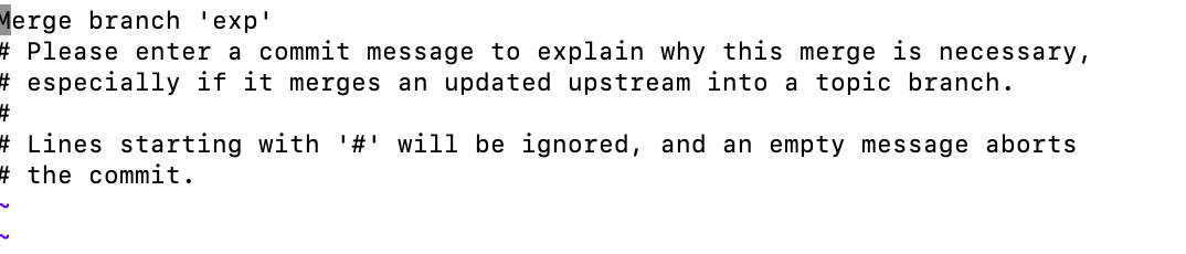 또 다시 마스터로 돌아가서 git merge exp를 해주면 이러한 메세지가 나온다.