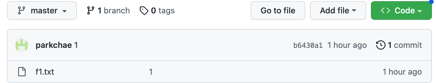 이후 로컬 저장소에 f1.txt 내용을 추가하고 커밋한다.